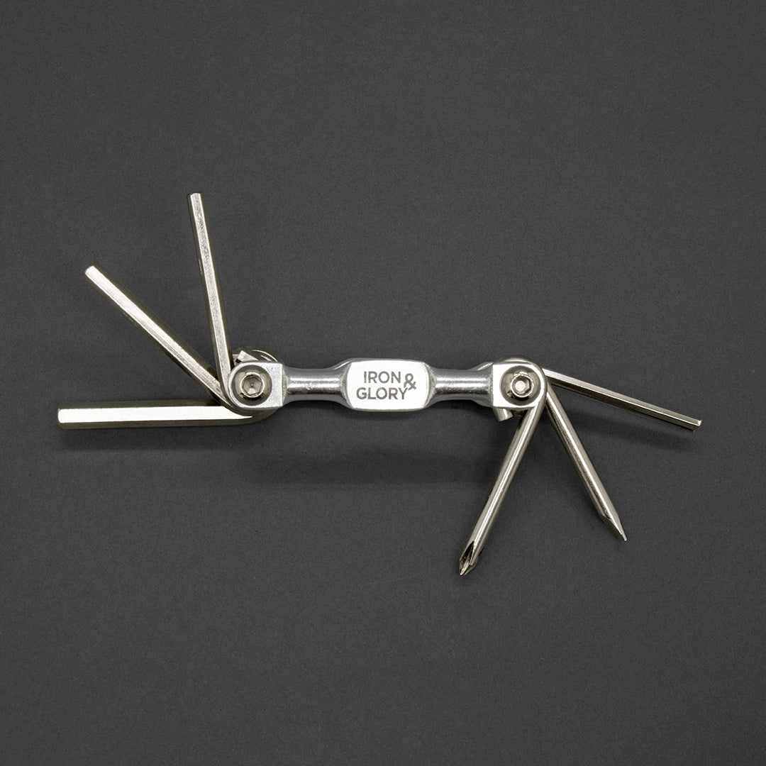 The bicycle is no doubt one of the greatest of all inventions. So simple. So useful. So cool. Of course they’d be better with an engine, but nobody’s invented that yet. Oh wait… But bikes can go wrong and nobody wants to ride with a full set of tools. Enter the I&G 7-in-1 multi-tool for cyclists, featuring 5 hex wrench settings plus crosshead and flathead screw drivers in one compact stainless steel tool. Ride On!