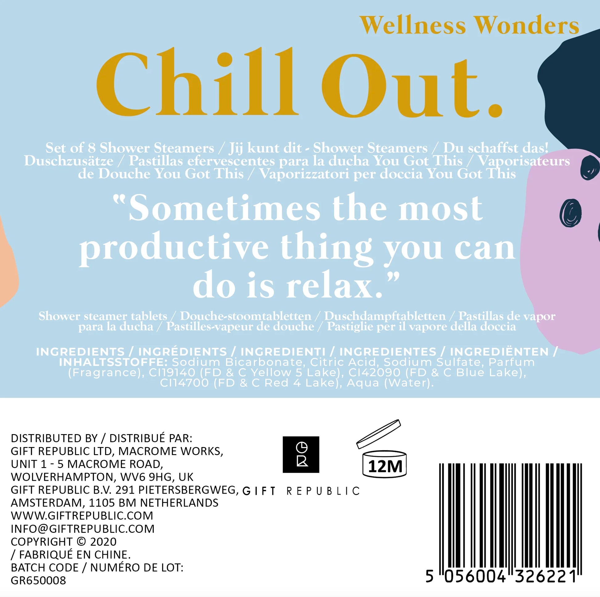 Wind down with our Chill Out Shower Steamers. Place one of these 8 steamers in the corner of your shower at the end of the day to release the vanilla, jasmine and valerian scent to relax and stay chilled.