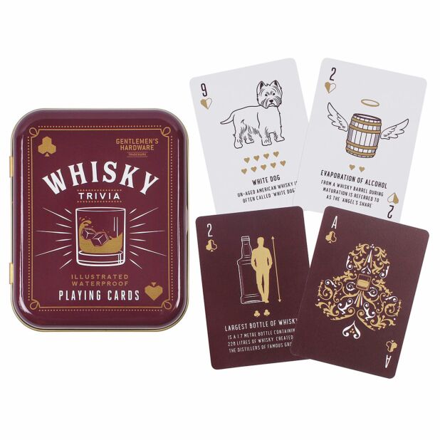 This comprehensive set of cards offers a unique and engaging gaming experience. Doubling as traditional playing cards, this 52-card deck also contains whisky trivia on each piece.