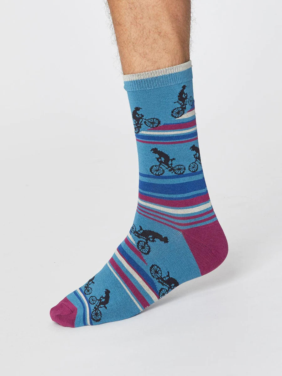 Our best selling bamboo bike socks are back in four stylish colours. These sustainable socks are super soft, breathable, and anti-bacterial, featuring a fun bike print.