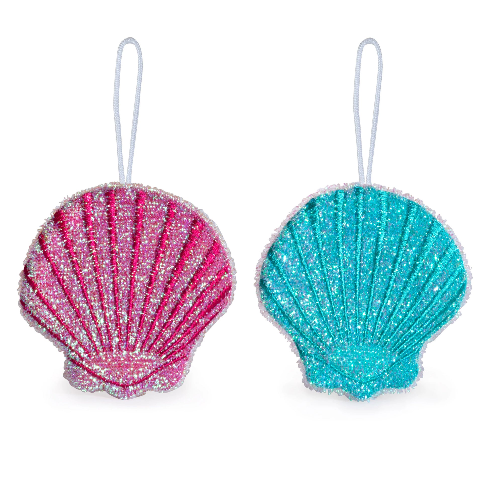 Shell yeah! Add these scrubbing sponges to your seashell collection. Set of 2 scrubbing sponges. Features a nylon string to hang it up when you're done with the dishes.